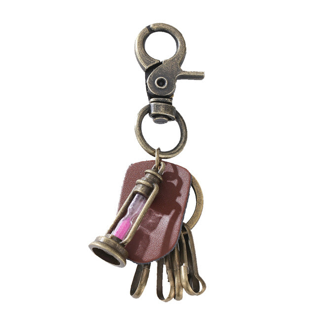 Steampunk Style, Ring Leather Keychain, Hourglass Pendant